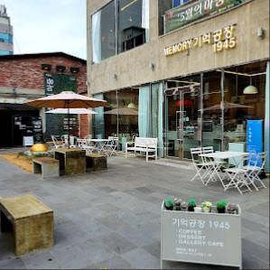 記憶工場1945は、古民家を改装した建物に立つカフェで、そのアンティーク調の空間は訪れる人々に独特の魅力を与えます。内装には芸術作品が数多く展示されており、ギャラリーのような雰囲気も感じられます。Google My Businessの口コミには「エン틱한 건물공간과 작품들로 편안한 시간을 보냈습니다.」(アンティークな建物の空間と作品たちで、リラックスした時間を過ごしました)とあるように、落ち着く空間作りが自慢のポイントです。